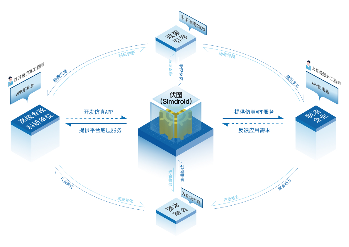 - 關(guān)鍵技術(shù)攻關(guān):聯(lián)合專(zhuān)家、合作伙伴開(kāi)發(fā)仿真軟件,打造仿真APP生態(tài)體系